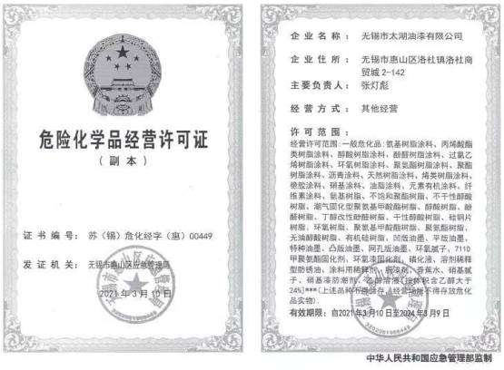 “太湖牌”油漆主要產(chǎn)品有:油性類(lèi)、酚醛類(lèi)、醇酸類(lèi)、瀝青類(lèi)、氯化橡膠類(lèi)、環(huán)氧類(lèi)、丙烯酸類(lèi)、聚酯類(lèi)、聚氨酯類(lèi)、氨基類(lèi)、水性自干類(lèi)、水性烘干類(lèi)等十幾個(gè)大類(lèi),一百多個(gè)品種。包裝規(guī)格齊全,產(chǎn)品主要用于船舶、鋼結(jié)構(gòu)、建筑、五金、機(jī)械、電器、家電、電動(dòng)車(chē)等行業(yè)。還可以根據(jù)客戶(hù)需求定制各種規(guī)格的產(chǎn)品,四十多年的追求和不懈的努力,使“太湖牌”油漆在廣大客戶(hù)中取得較高信譽(yù),并贏得了有關(guān)部門(mén)的認(rèn)可,曾經(jīng)多次獲得了江蘇省優(yōu)質(zhì)產(chǎn)品,江蘇省質(zhì)量放心、用戶(hù)滿(mǎn)意十佳誠(chéng)信單位等榮譽(yù)。